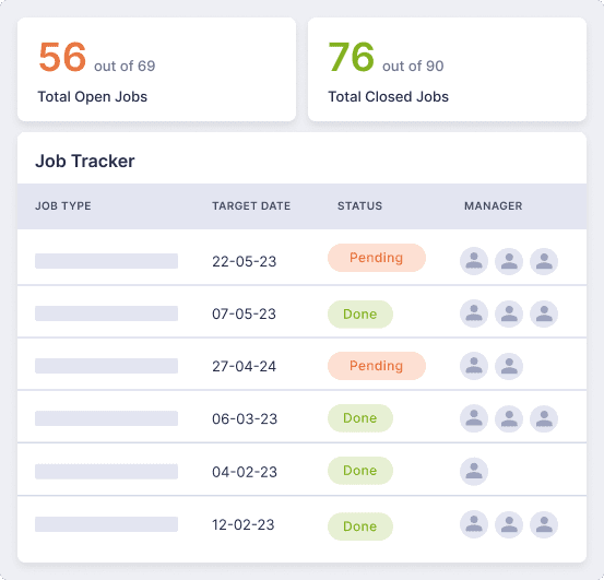 Easily manage and track job progress with Finac’s integrated job tracker feature. Stay organized and gain real-time visibility into jobs and its details. With our user-friendly interface, you can easily create and assign jobs and track hours worked.